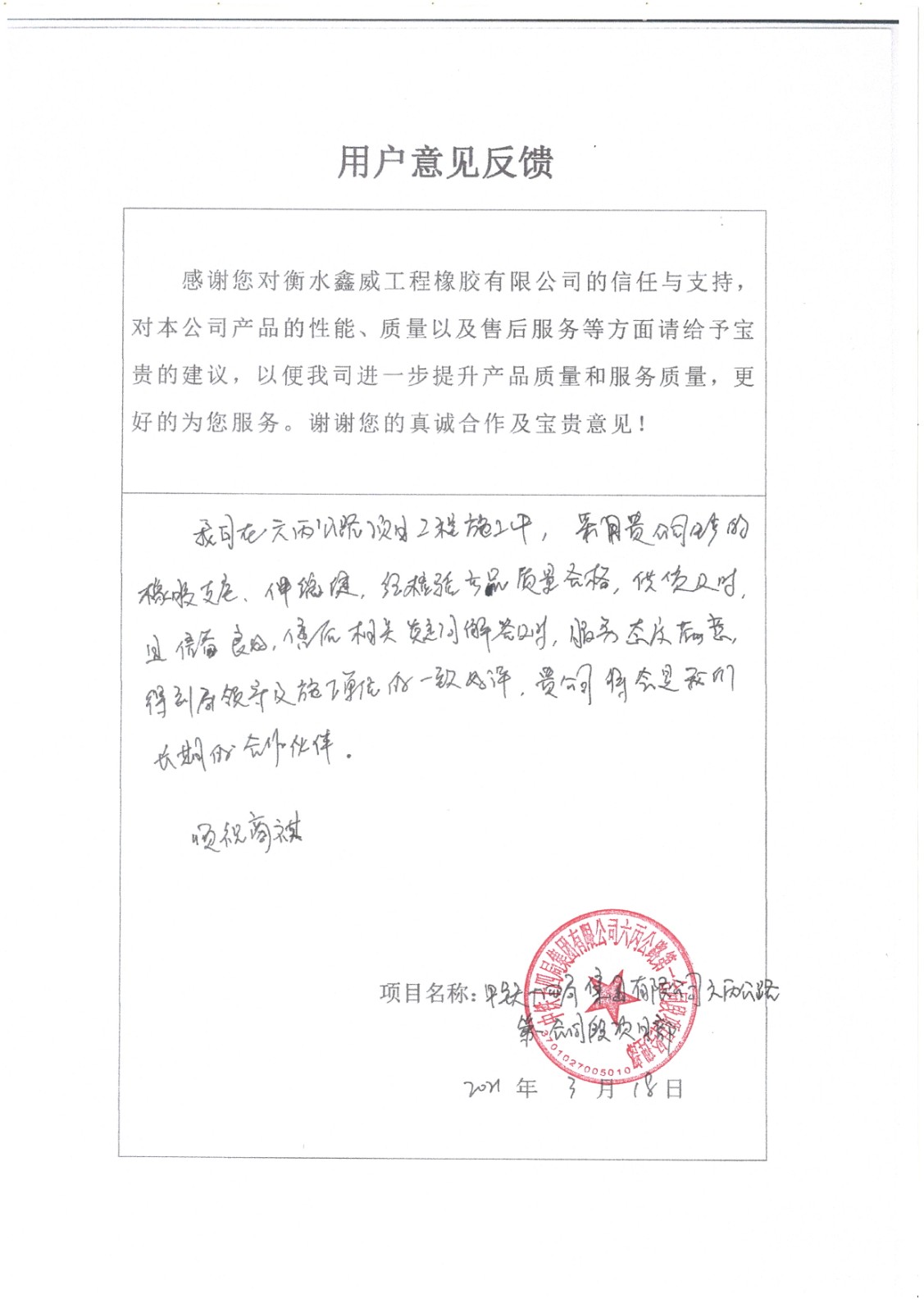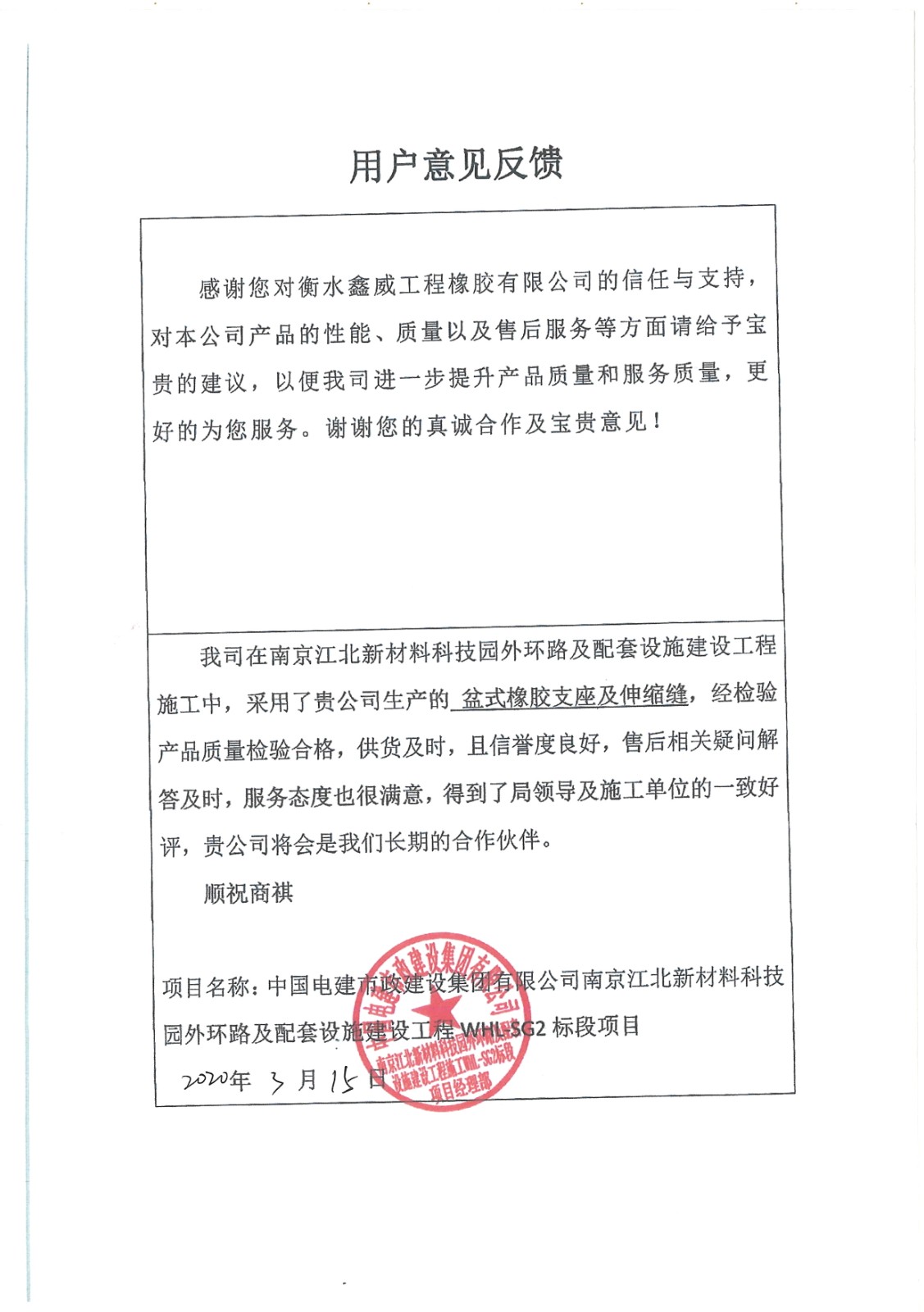 - 鑫威盆式橡膠支座用戶意見反饋表
